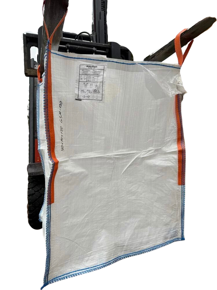 Worek wyposażony jest w cztery solidne uchwyty, które umożliwiają szybki i bezpieczny załadunek przy użyciu wózka widłowego lub dźwigu. Otwarta góra i płaskie dno zapewniają wygodne napełnianie oraz stabilne ustawienie podczas magazynowania.