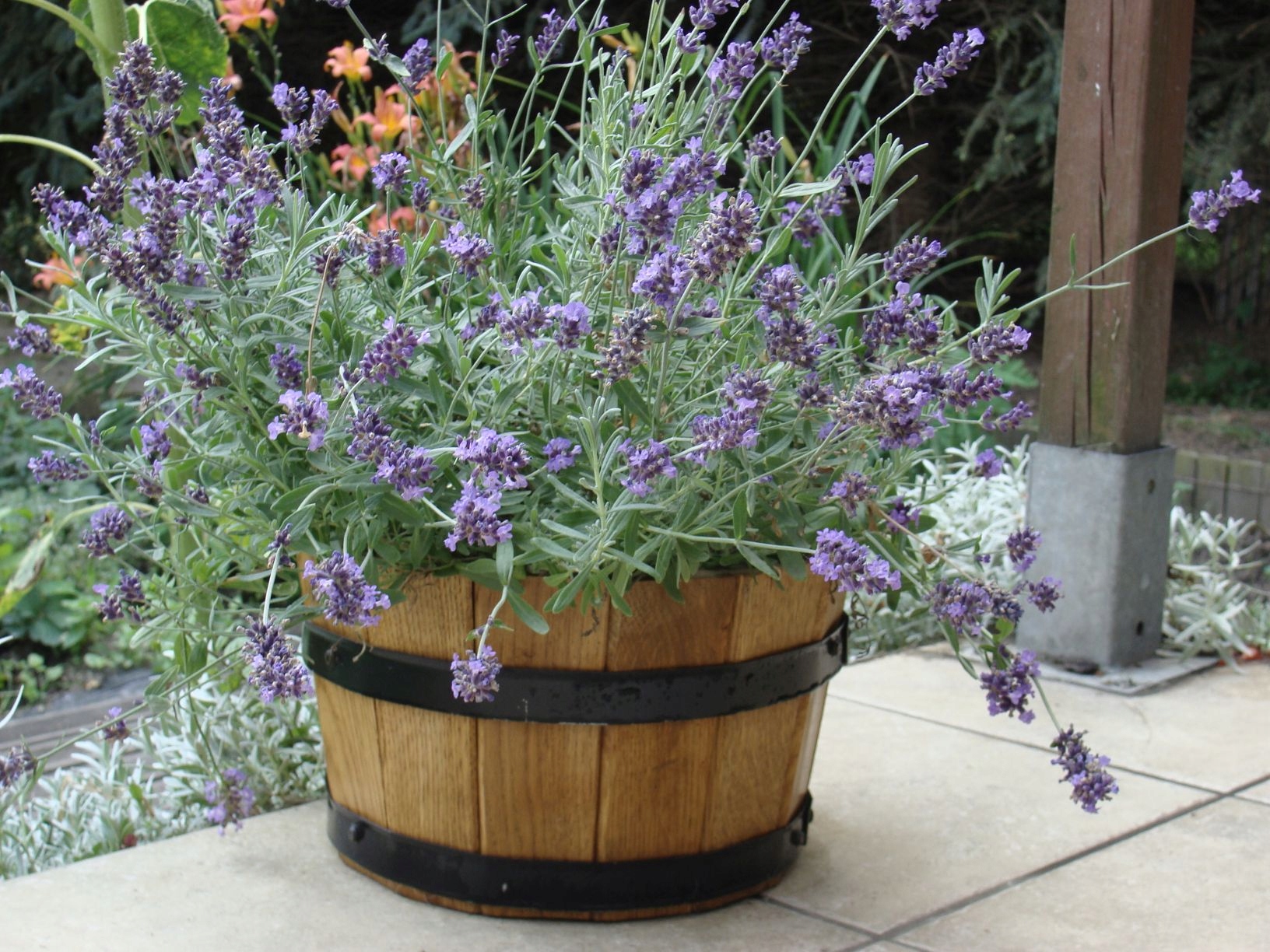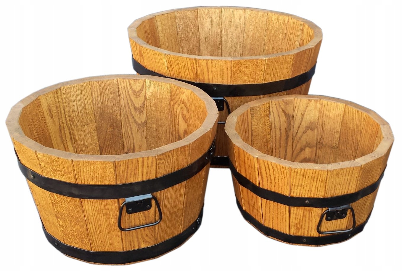 Donica posiada otwór drenażowy w grubym dnie z drewna dębowego.