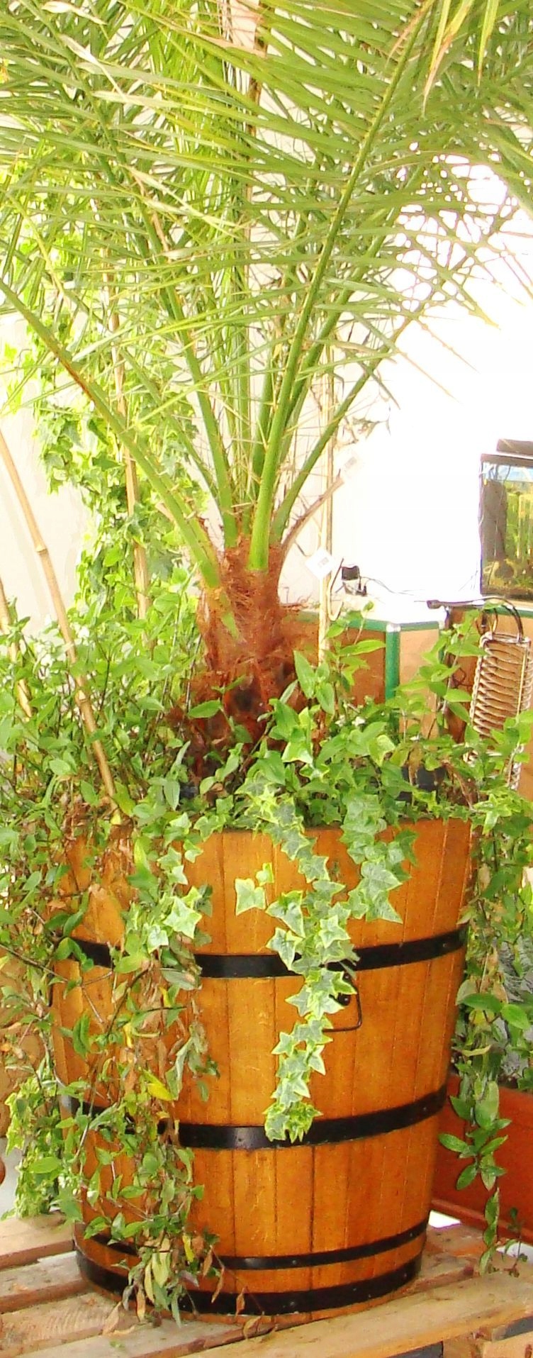 Donica posiada otwór drenażowy w grubym dnie z drewna dębowego.