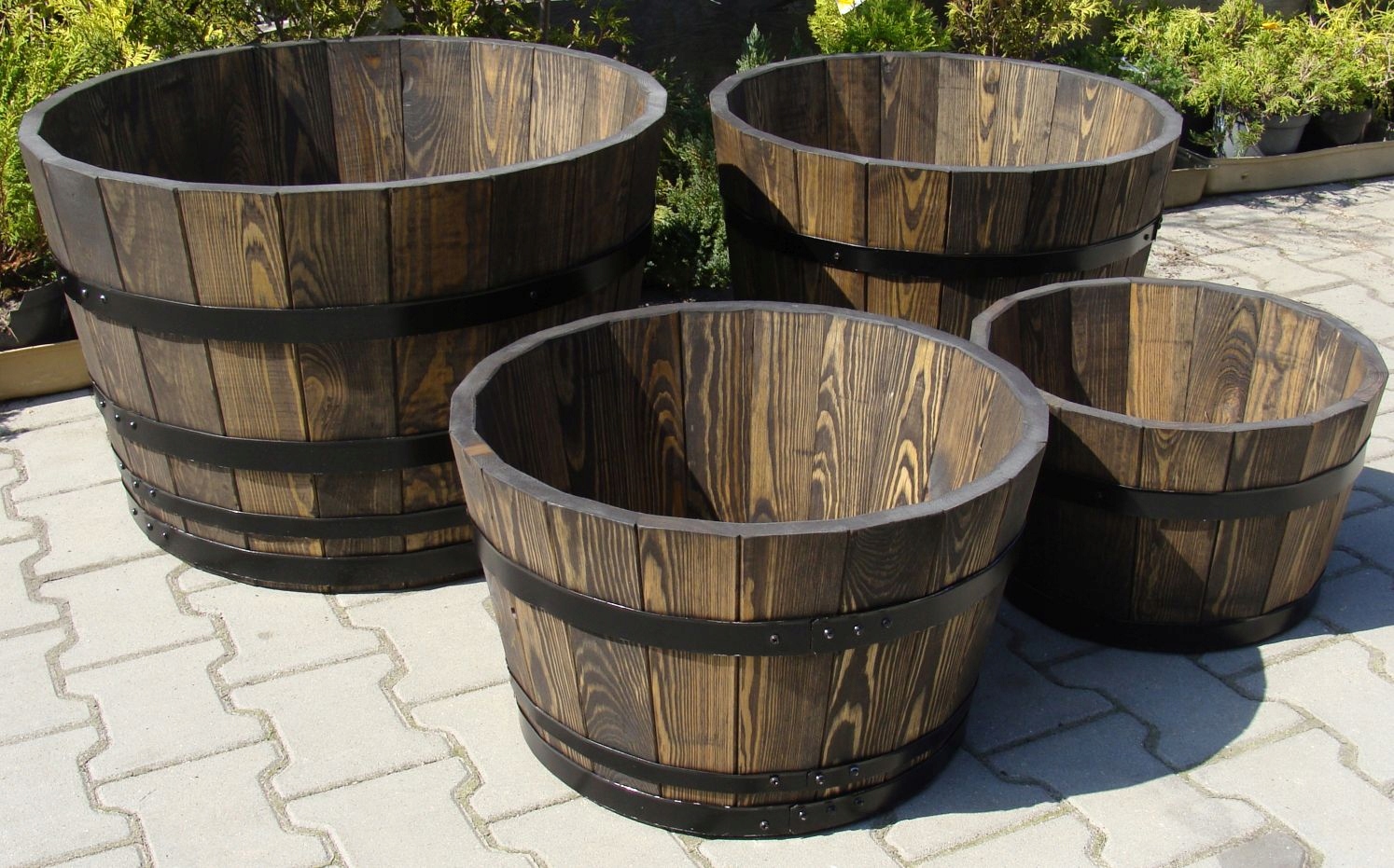 Grube dno drewniane z otworami drenażowymi gwarantuje prawidłowy rozwój roślin. Produkowane przez nas donice drewniane można obsadzać bezpośrednio z ziemią.