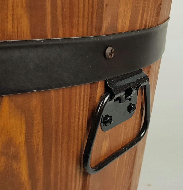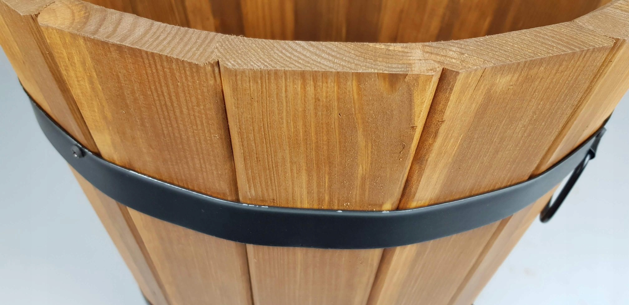 Donica posiada otwór drenażowy w grubym dnie z drewna sosnowego.
