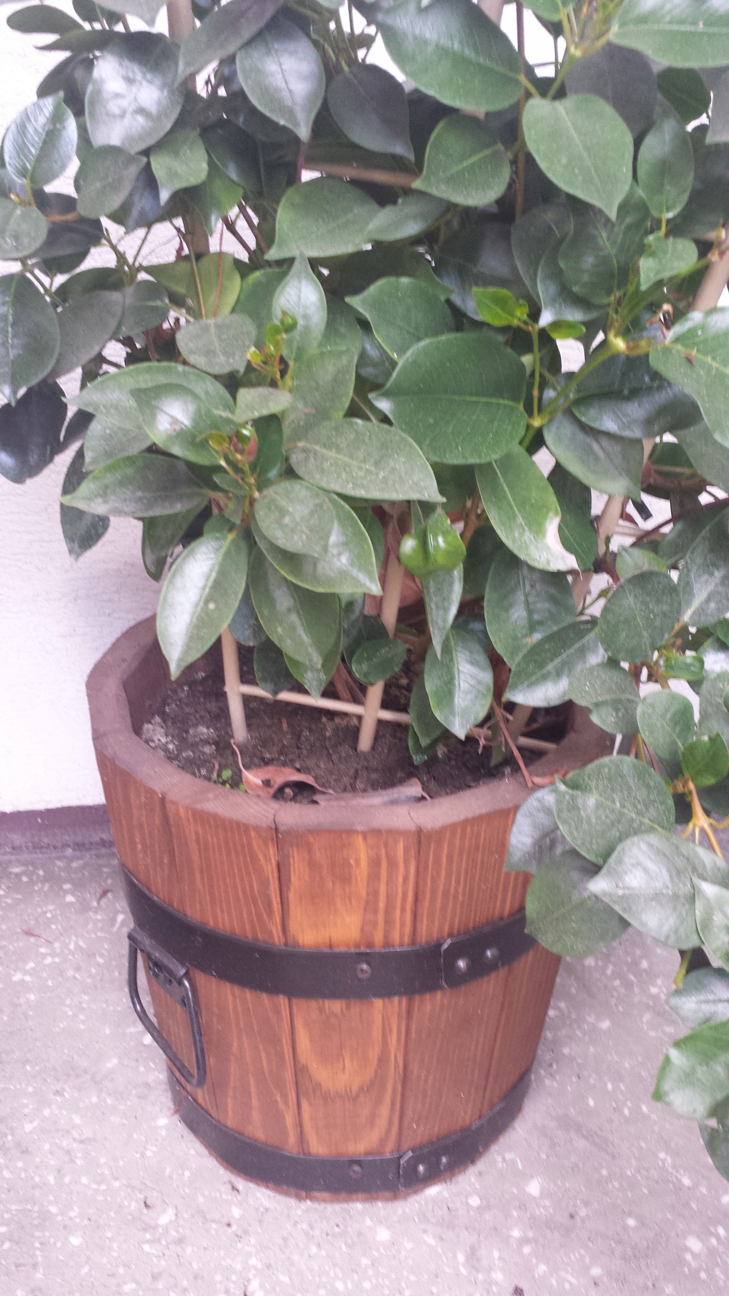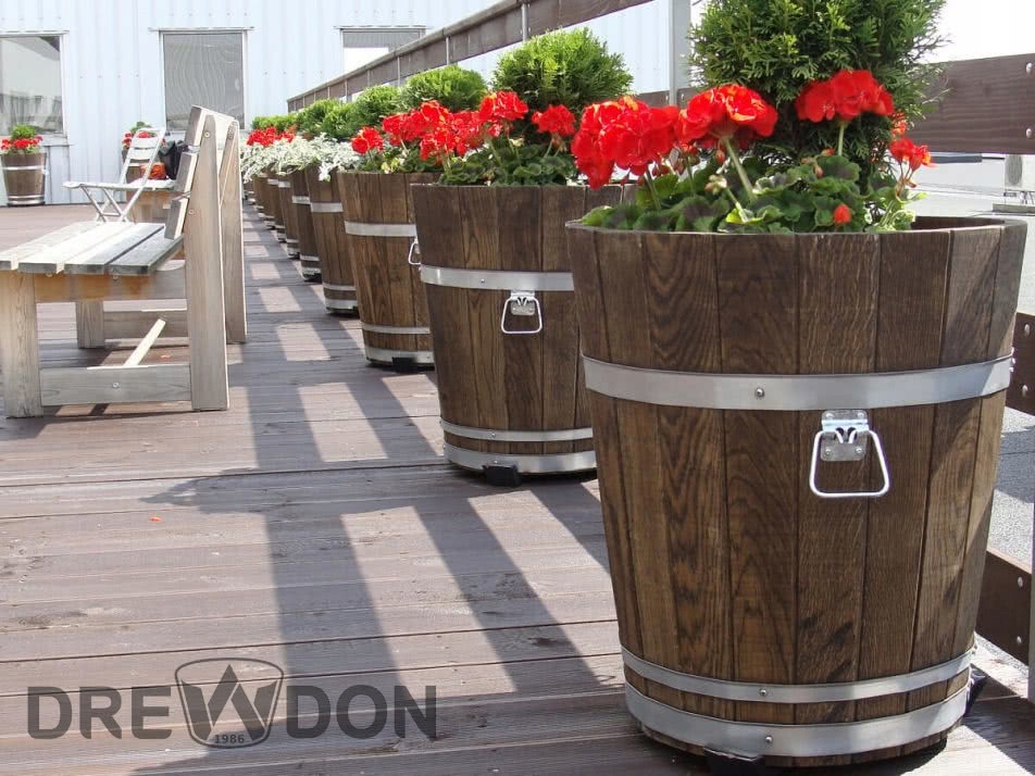 Donica posiada otwór drenażowy w grubym dnie z drewna sosnowego.