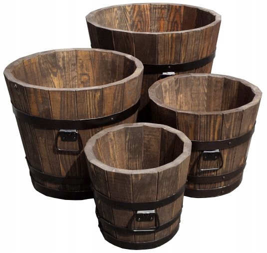 Donica posiada otwór drenażowy w grubym dnie z drewna sosnowego.