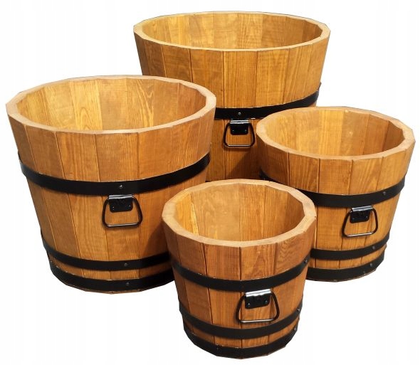Donica posiada otwór drenażowy w grubym dnie z drewna sosnowego.