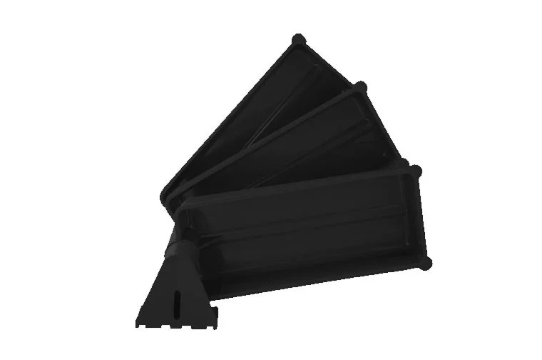 Zestaw składa się z 3 zawieszonych na wspólnej osi. Każdy z nich posiada specjalne uchwyty na rogach, które umożliwiają łatwe obracanie i wysuwanie wybranego pojemnika – bez potrzeby demontażu całego zestawu.