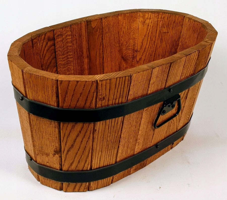 Doniczka posiada otwory drenażowe w grubym dnie z drewna DĘBOWEGO.