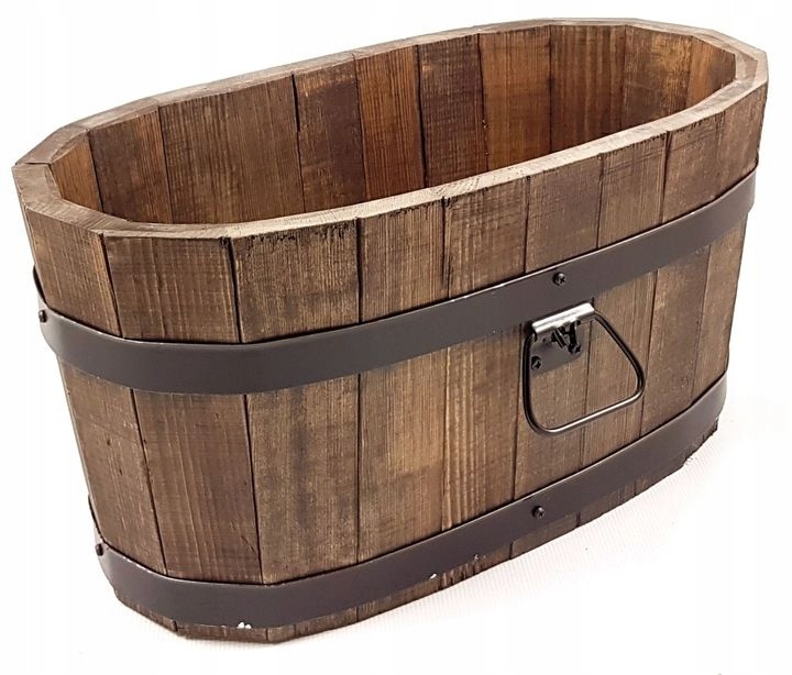 Doniczka posiada otwory drenażowe w grubym dnie z drewna sosnowego.