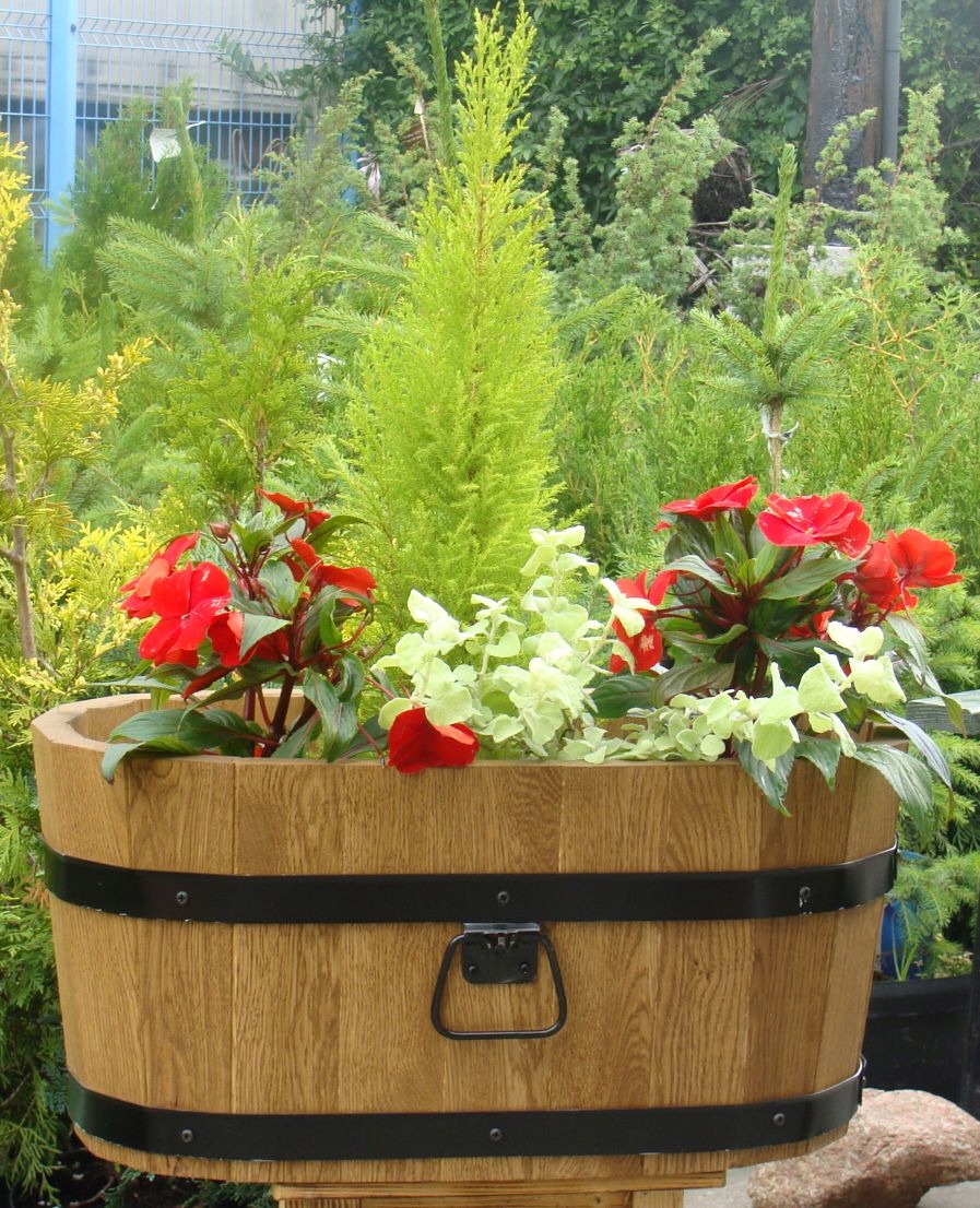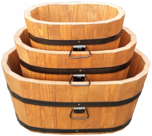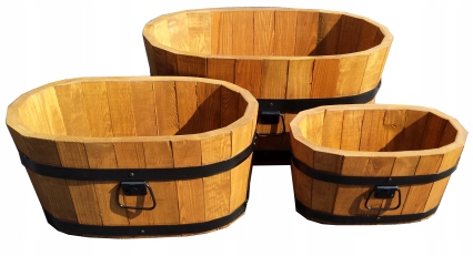 Doniczka posiada otwory drenażowe w grubym dnie z drewna sosnowego.